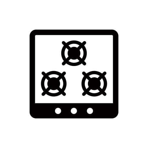 3つ口コンロ モノクロアイコン素材