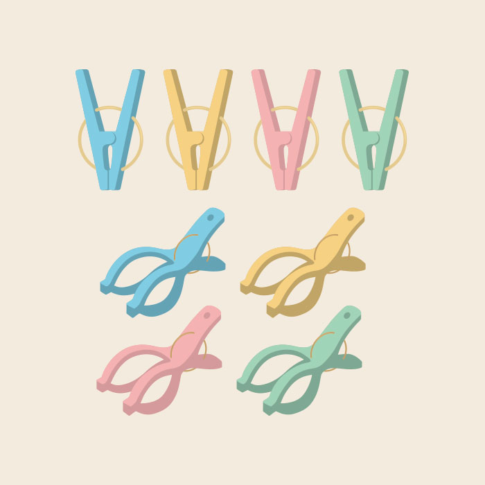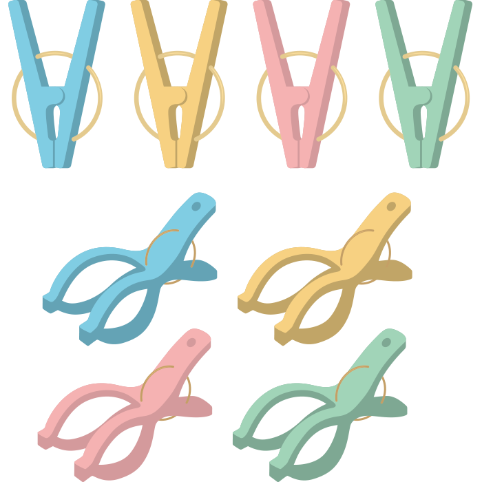 洗濯バサミ(ピンチ/ポールピンチ/セット)のシンプルカラーイラスト素材