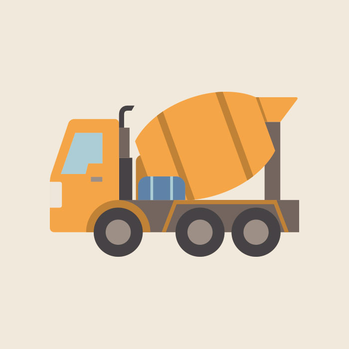 ミキサー車のシンプルカラーイラスト素材