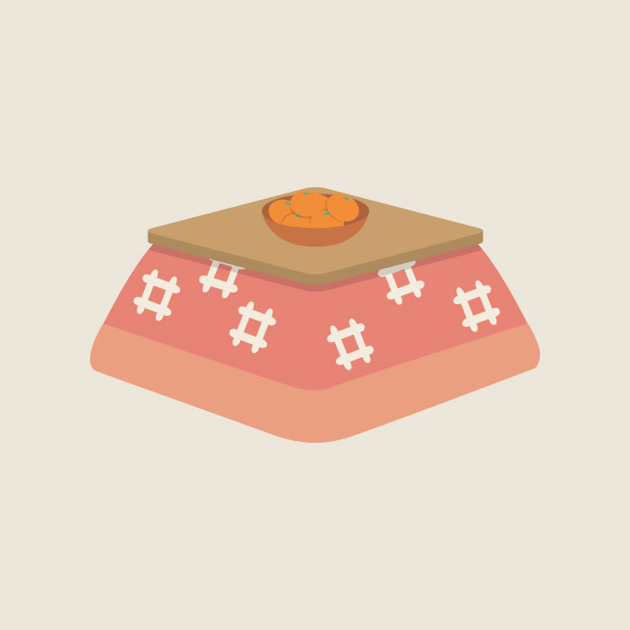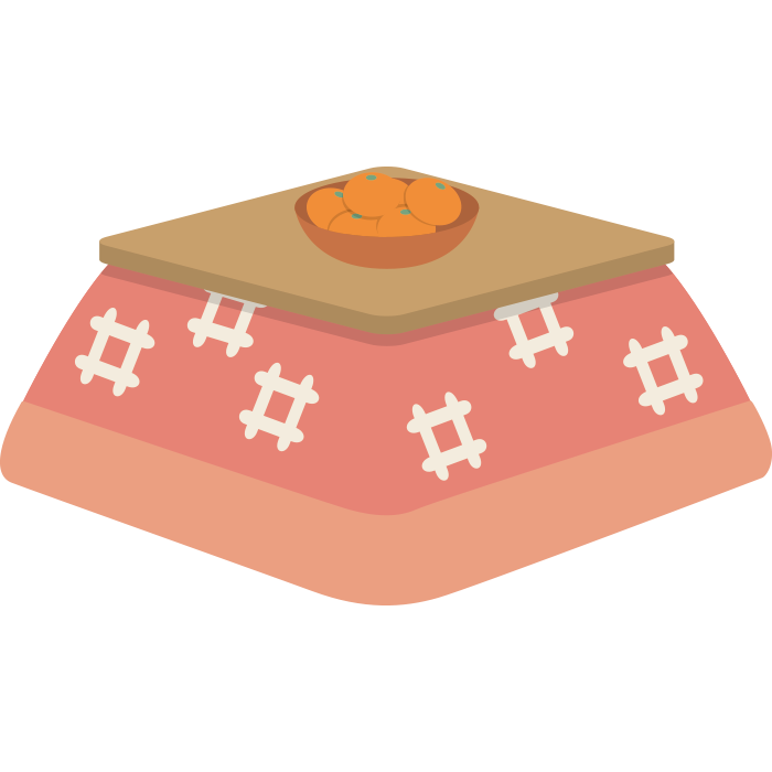 こたつとみかんの可愛くてシンプルなイラスト素材です